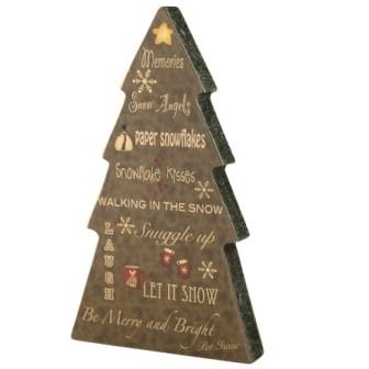 Wood block pine tree adorned with words of Winter fun! Measures approx. 6-3/4″ x 3-7/8″ x 3/4″ and is designed by Pat Isaac.